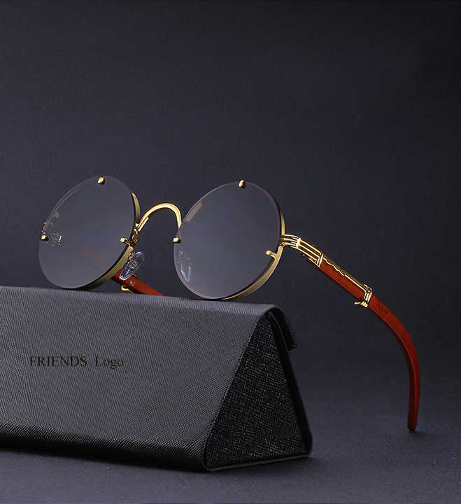 Nouveauté 2021 – Lunettes de soleil tendance sans monture dorées, unisexe, petites, rondes, couleur grain de bois, protection UV400, monture PC+Métal BOOM BM7535