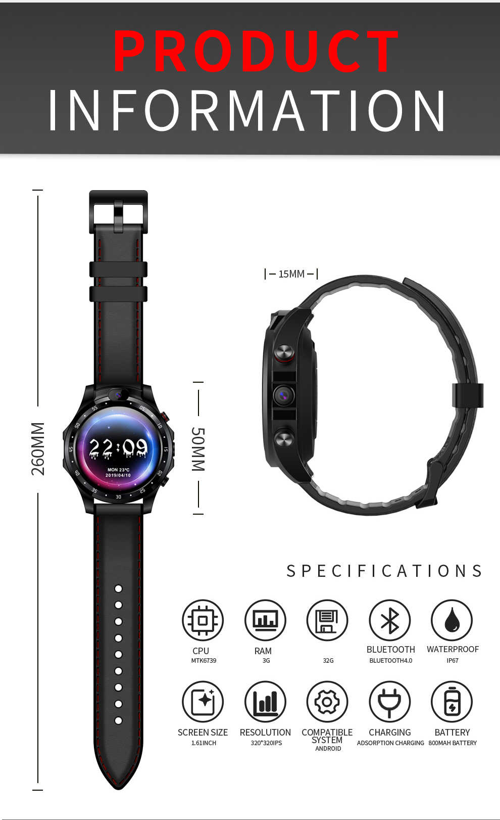 Nom du produit:Montre intelligente de téléphone de traqueur de haute qualité