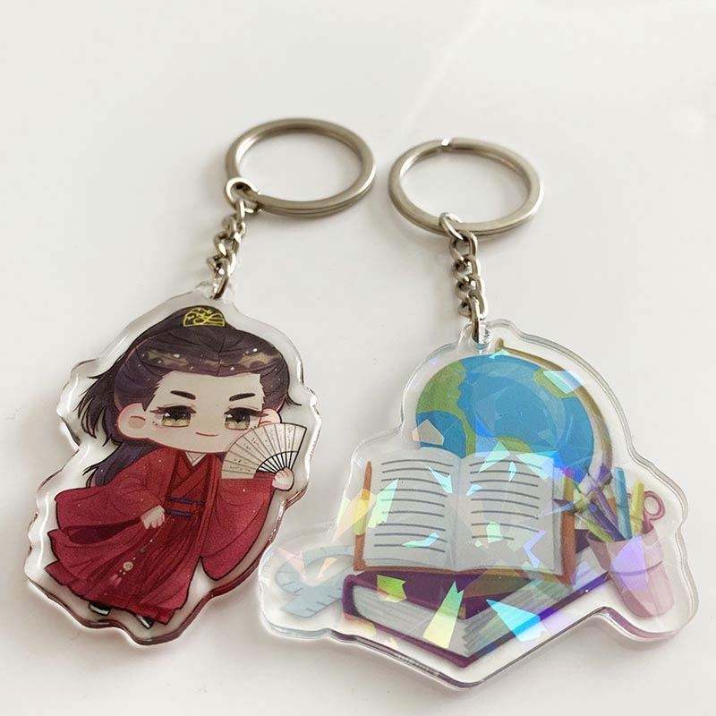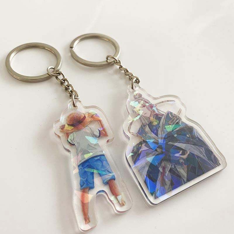 2021 New Design Cheap Factory Custom Cartoon Printed Logo Hologram Glitter Acrylic Keychain Display for Promotion Gift