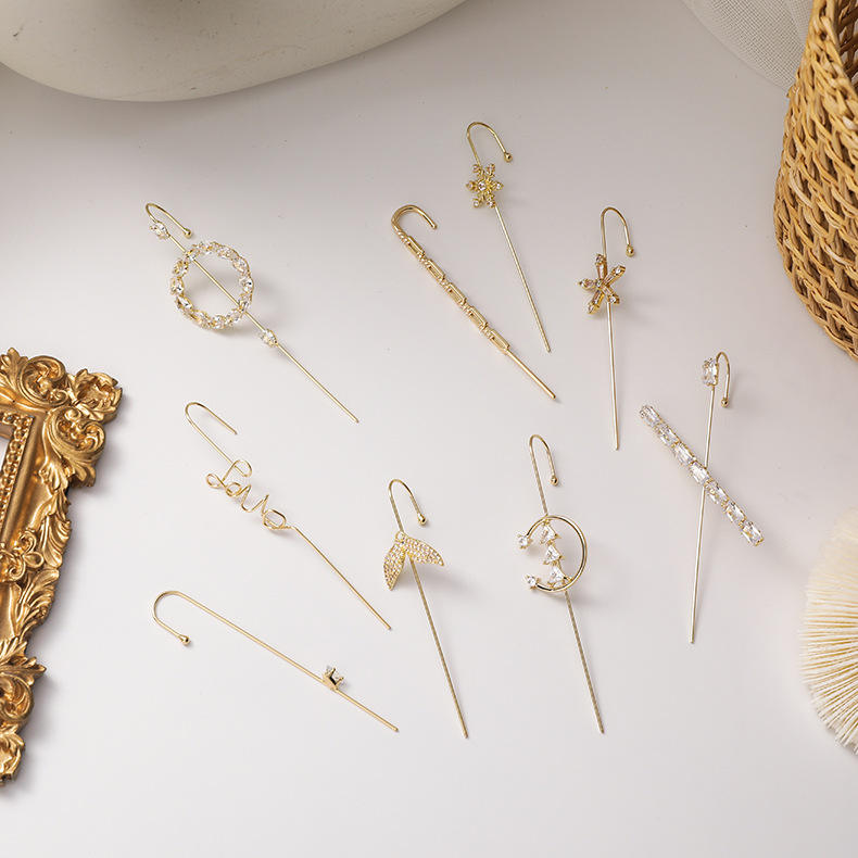 Nouvelles boucles d'oreilles à crochet enveloppantes pour femmes, modèle 2021, en cuivre incrusté de zircon, pour piercing auriculaire diagonal