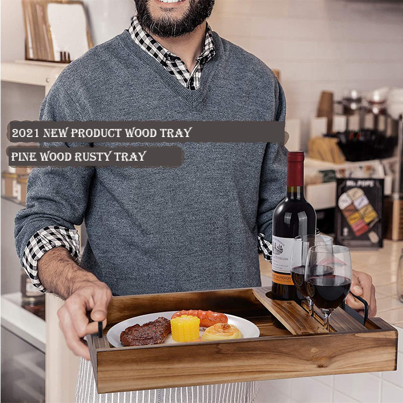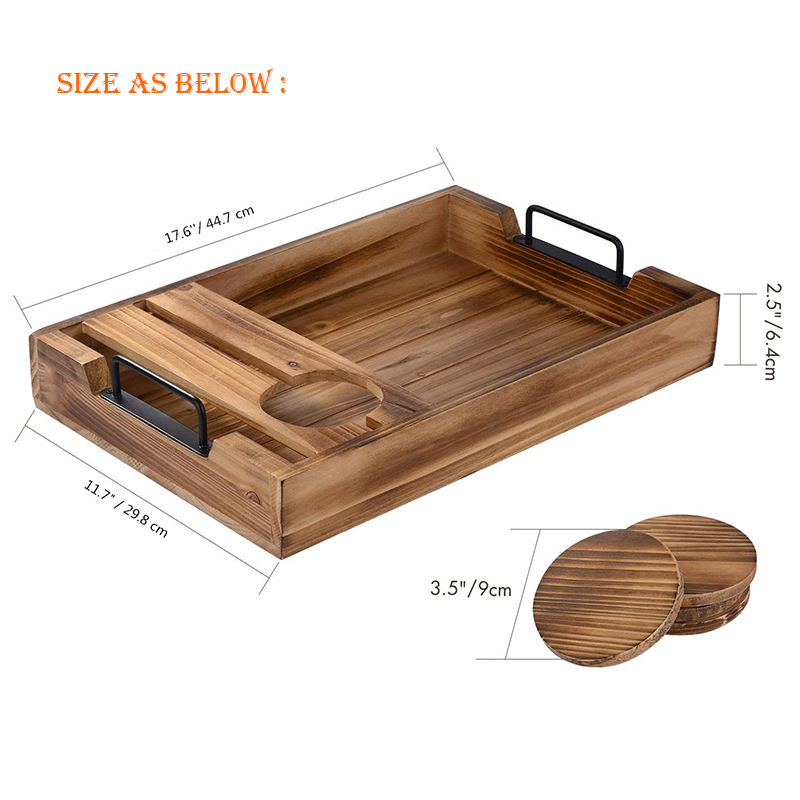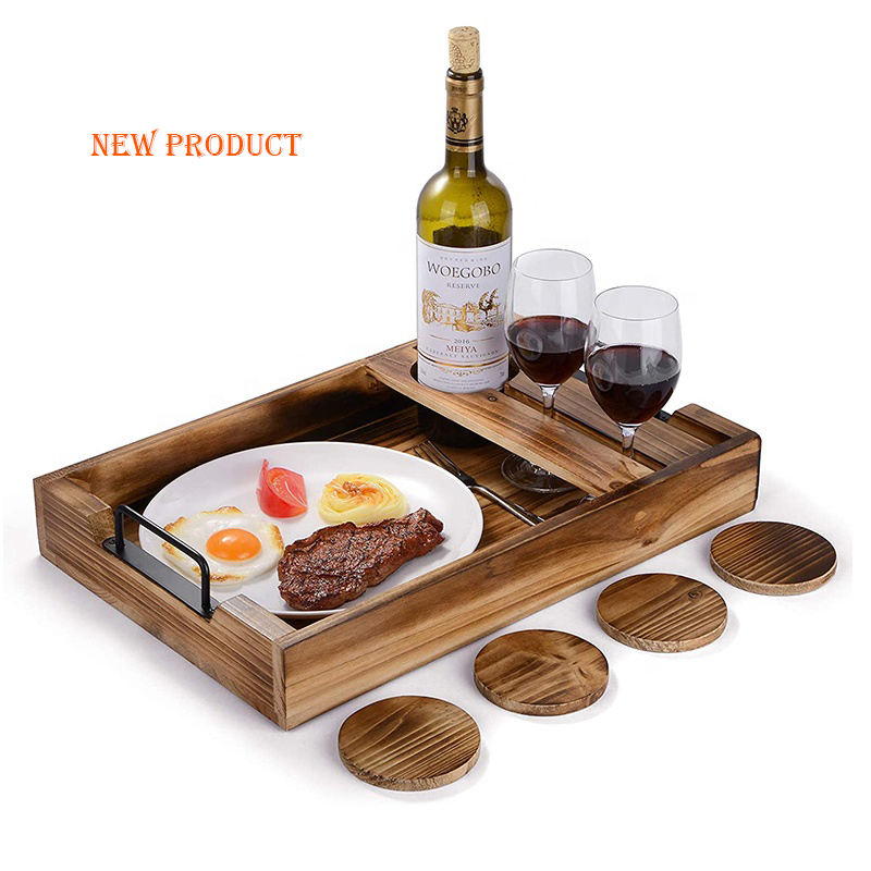 2021 Plateau de service en bois rustique avec 4 sous-verres Plateau à vin de stockage du Nouvel An