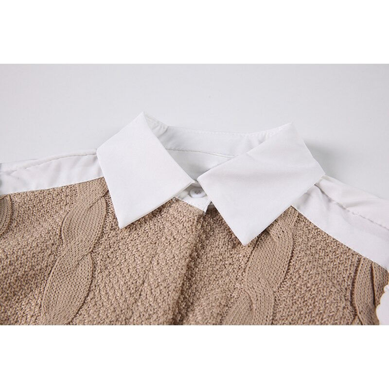 Macheda — chemisier court à manches longues pour femmes, en Patchwork, tricot torsadé, revers, simple boutonnage, Tops, printemps, 2021