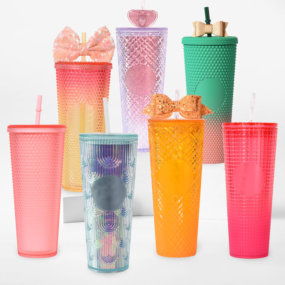 2022 24oz Z-Protected Brevet Double Paroi Mat Clouté Gobelet En Plastique Logo Personnalisé Noir Réutilisable Gobelets Froid Couvercle Café Parties