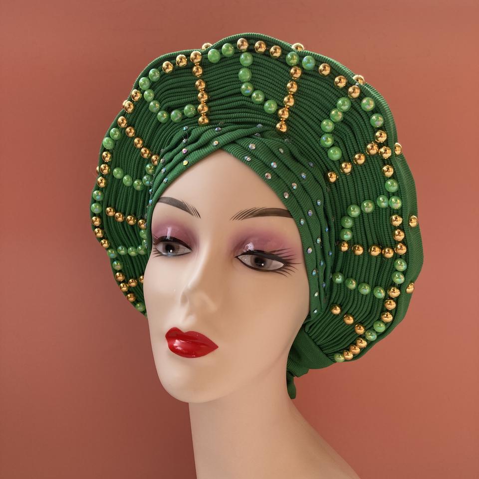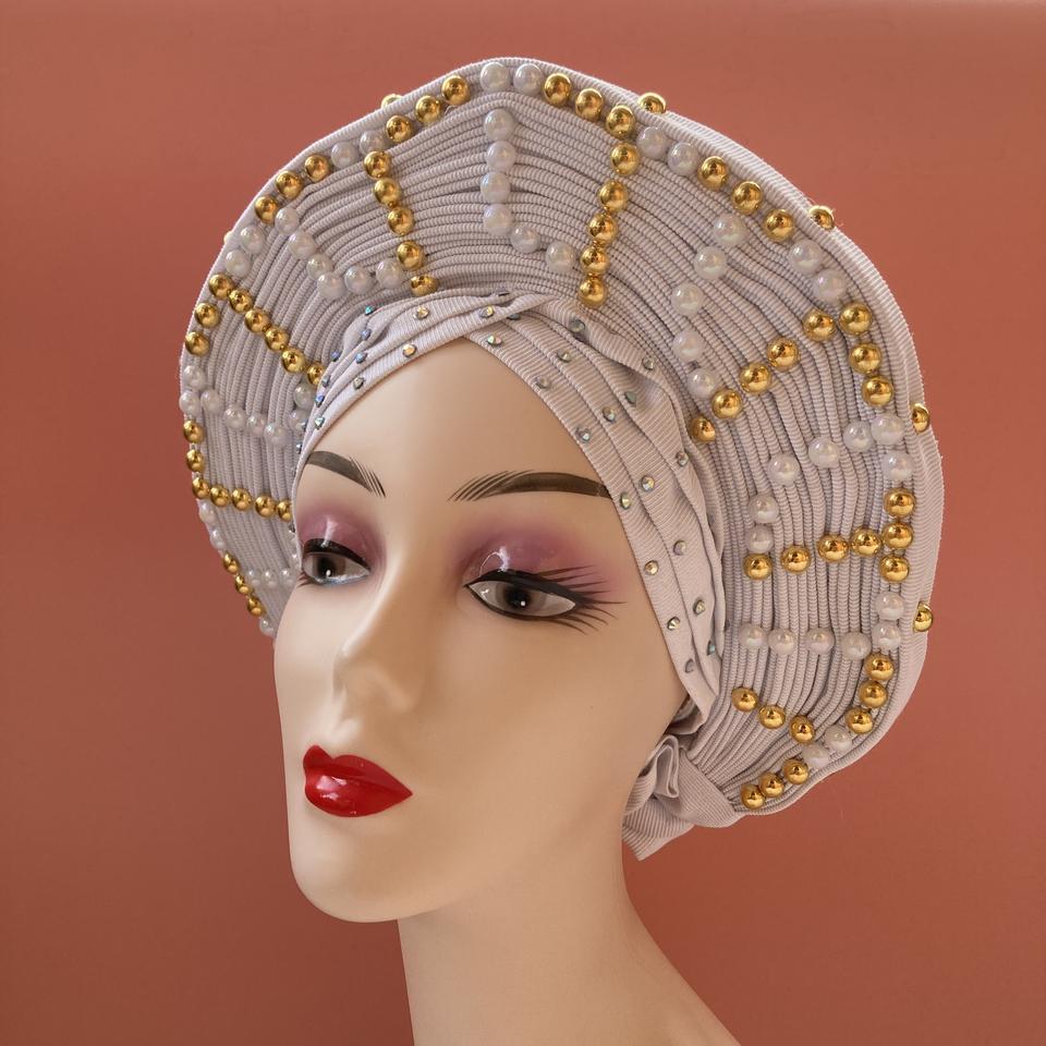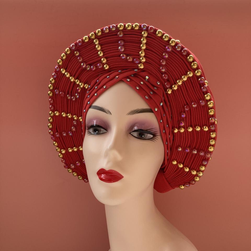 2022 Auto Gele African Gele Déjà Heatie Aso Oke Headtie Avec Perles Chapeaux Africains pour Femmes DHL Shipping