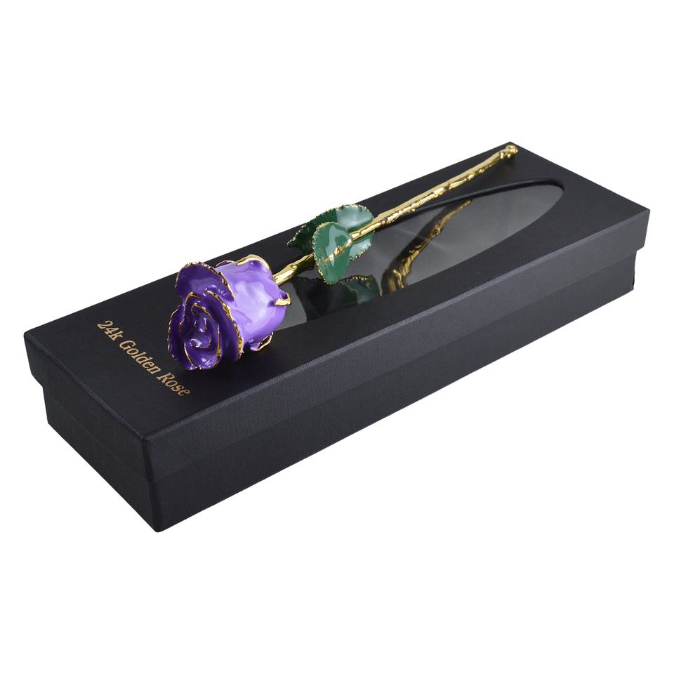 Rose véritable pourpre coloré avec bordure en relief, livraison gratuite, 2022, Rose naturelle, Design pour la saint-valentin, or 24k