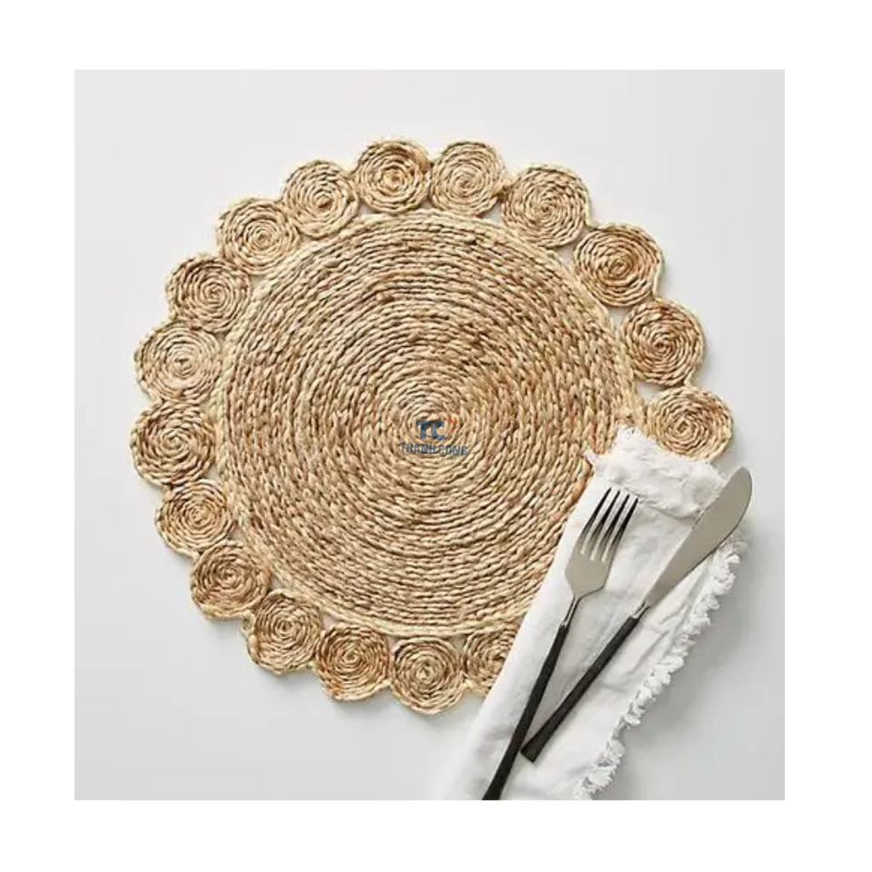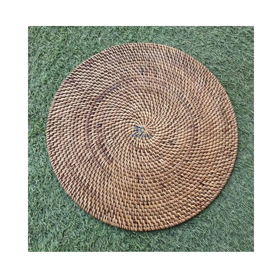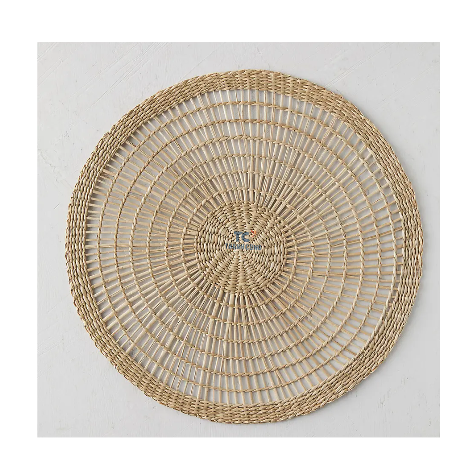 2022 moins cher écologique tissé herbe paille fait à la main naturel jonc de mer table ronde tissé napperon du Vietnam