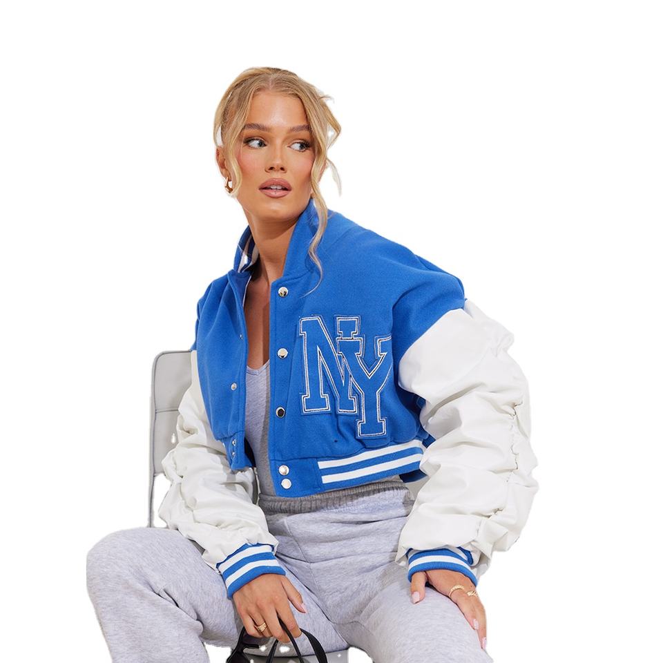 2022 veste universitaire pour femmes avec logo personnalisé avec col montant lettres brodées veste de baseball pour l'hiver printemps automne saisons