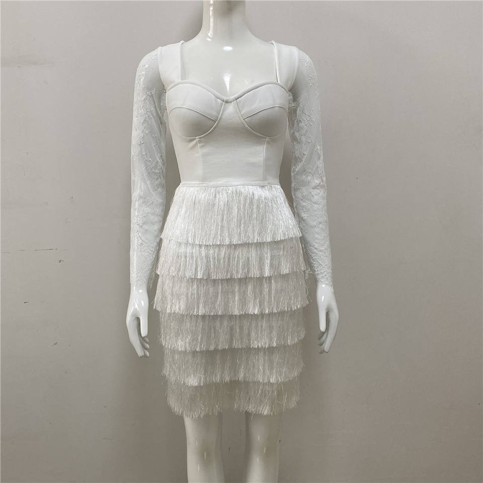 2022 personnalisé automne Offre Spéciale mode Vintage élégant frange robe crayon Sexy dentelle à manches longues mince vacances robes pour les femmes