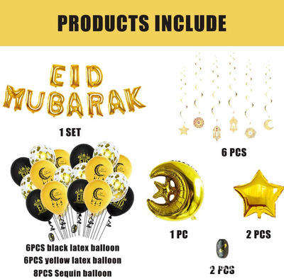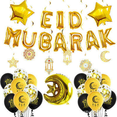 2022 Eid Mubarak ballon décoration ensemble Eid Mubarak lettre feuille bannière lanterne suspendu tourbillon pour fournitures de fête islamique