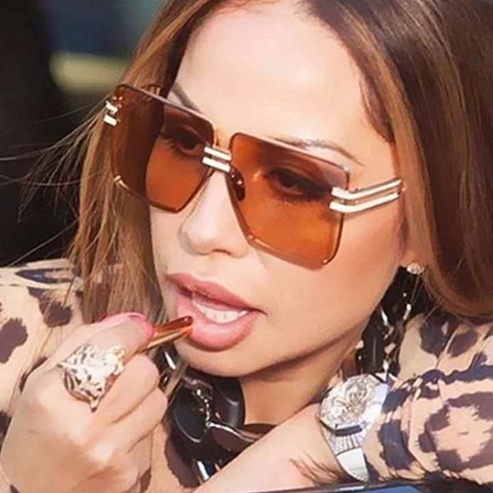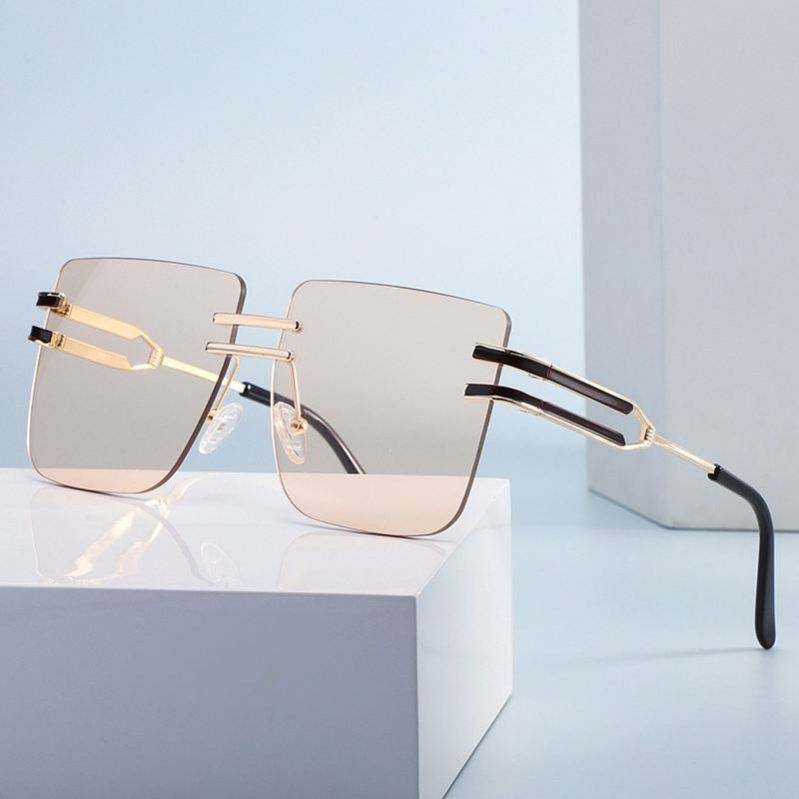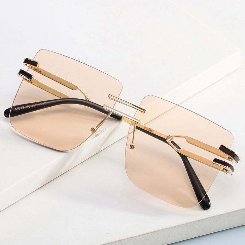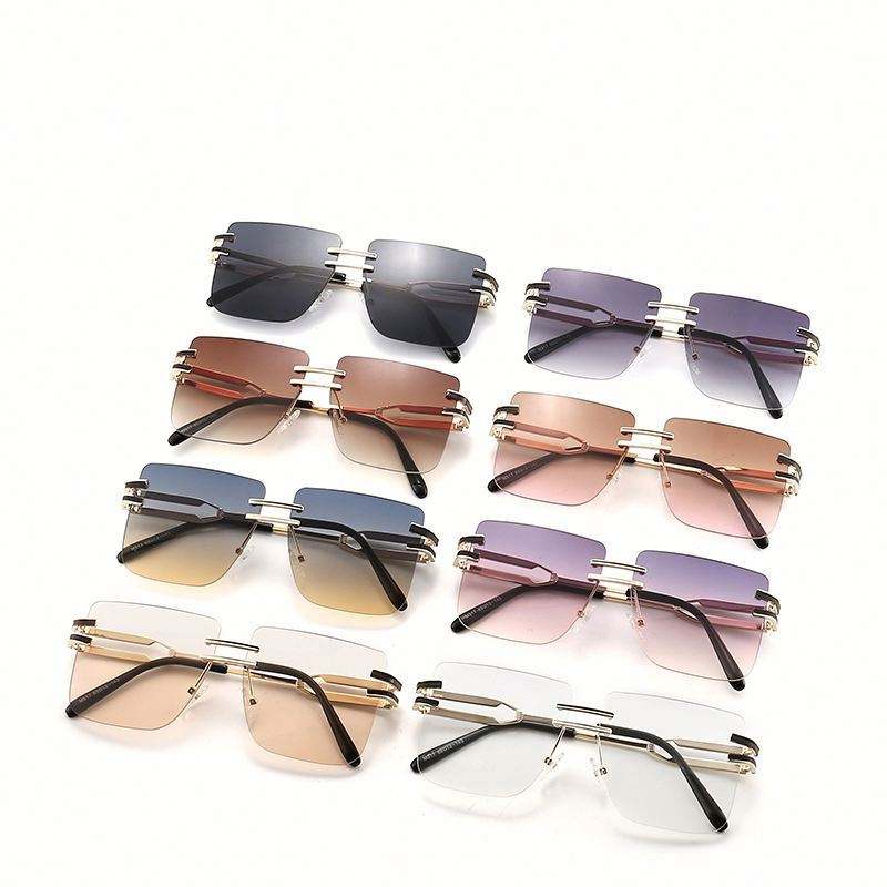 Lunettes de soleil carrées surdimensionnées rétro pour hommes, mode 2022, branches métalliques, sans monture, pour femmes