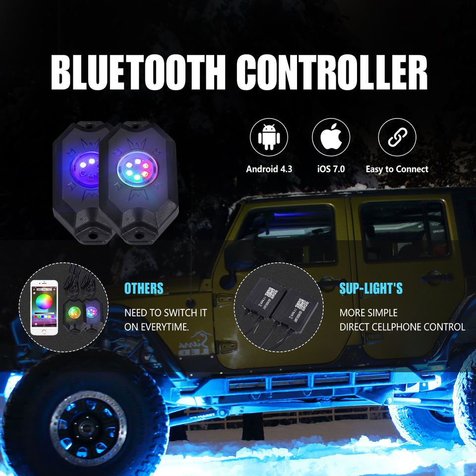 Prix de gros RGB LED Rock Lights 4 Pods 8 Pods RGB led rock light Kit avec contrôle APP fit pour Jeep voiture camion vtt RZR UTV SUV