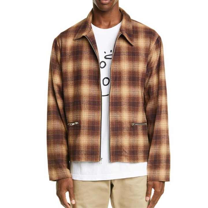 Veste d'hiver à fermeture éclair personnalisée de haute qualité 2022, veste à carreaux pour homme, chemise en flanelle pour homme