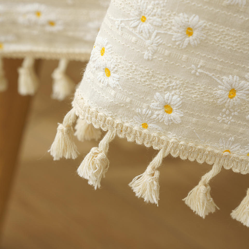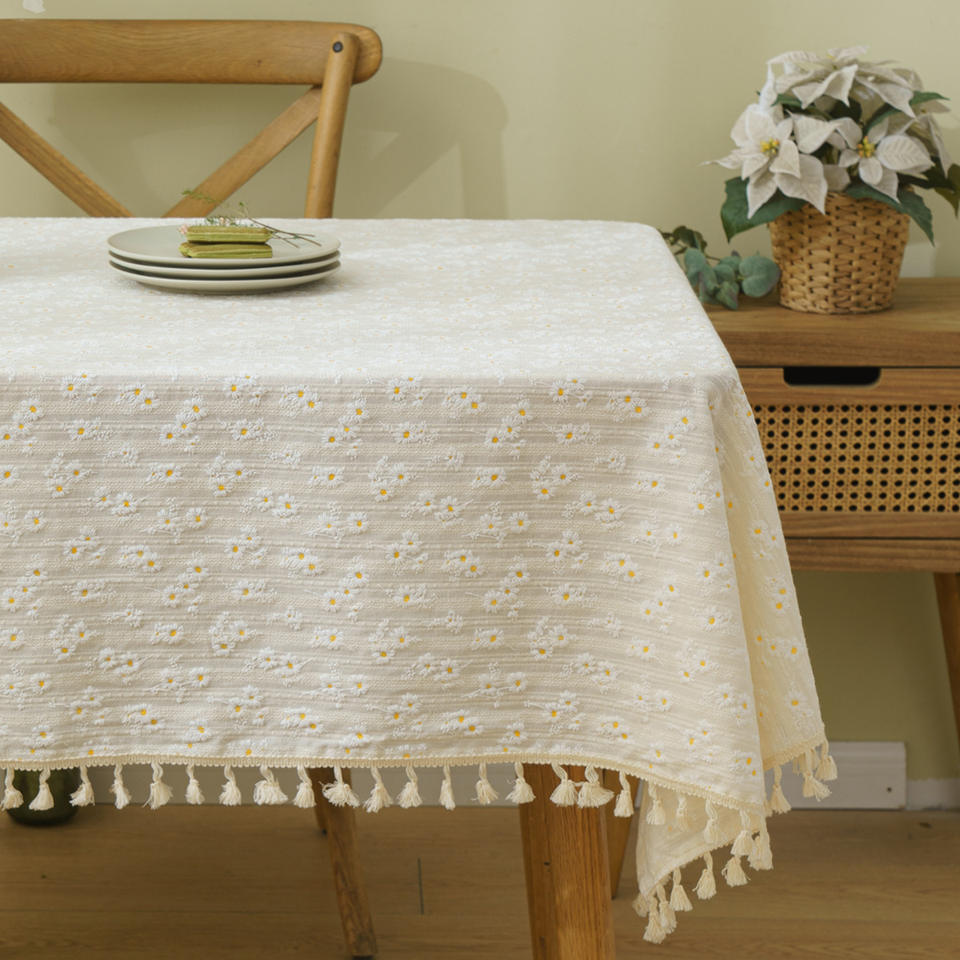 Nappe en lin et coton Jacquard avec broderie de marguerite de ferme française, dernière conception 2022