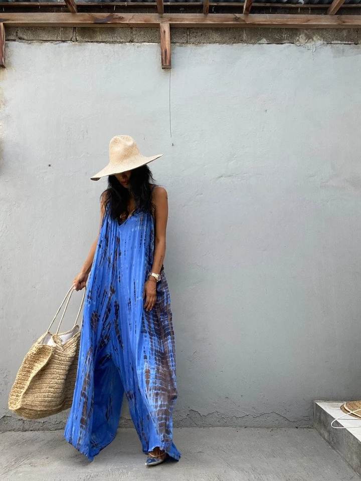 2022 nouveauté femmes été Floral surdimensionné combinaison cravate teinture imprimer Style doux parole longueur gland tissé méthode naturel