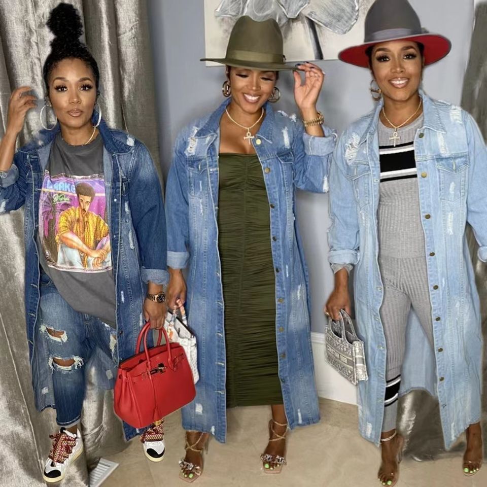 Keywords:Cotton Long Denim Jacket Trench Coat