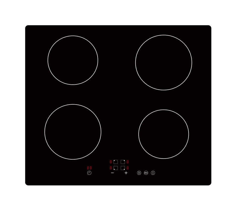 4 brûleurs intégrés dans la cuisinière à induction 60cm construit dans la plaque de cuisson à induction