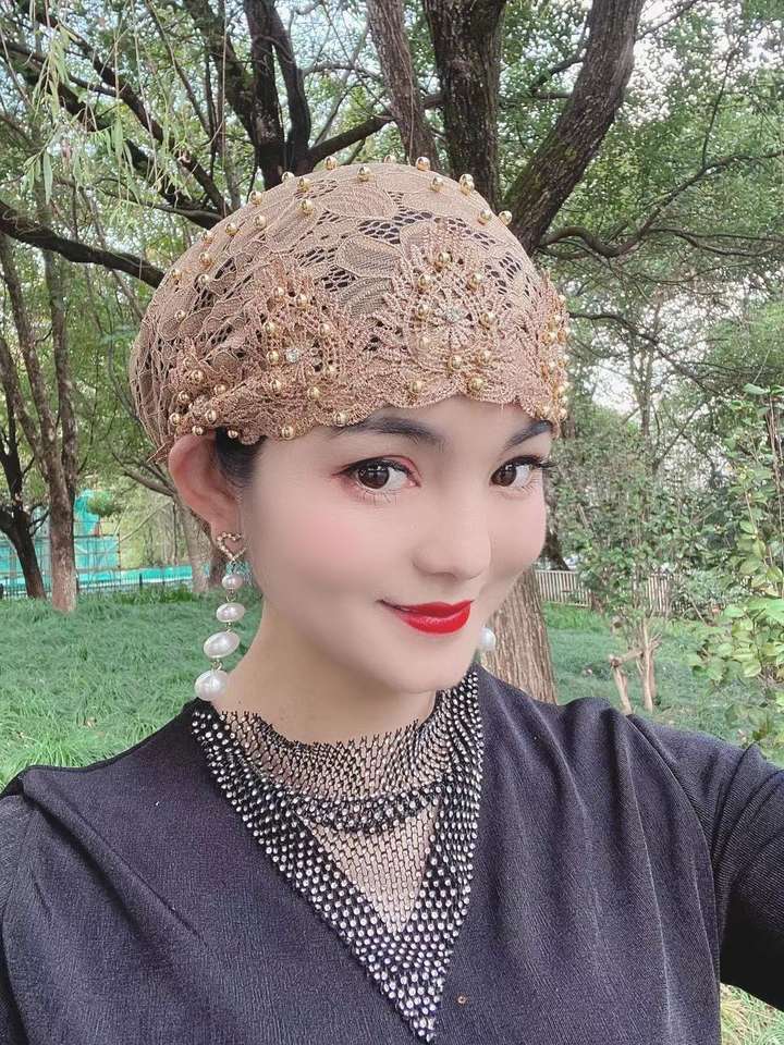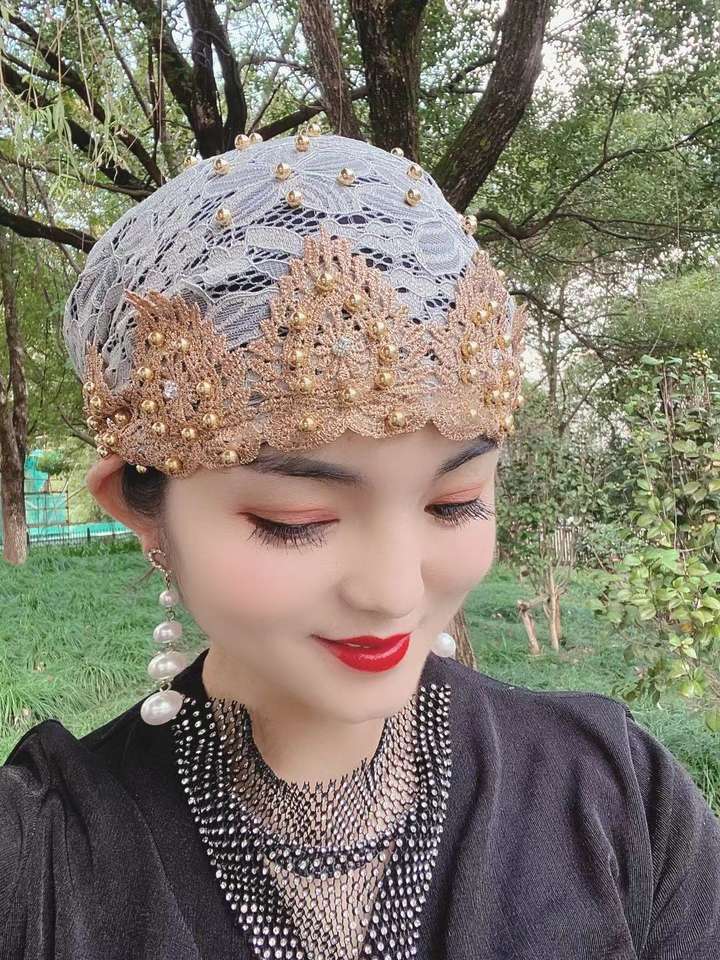 Chapeau Hui brodé à la mode, nouveau design 2022, avec perles en forme de vis, chapeau de fée, bonnet Baotou, foulard musulman pour femmes