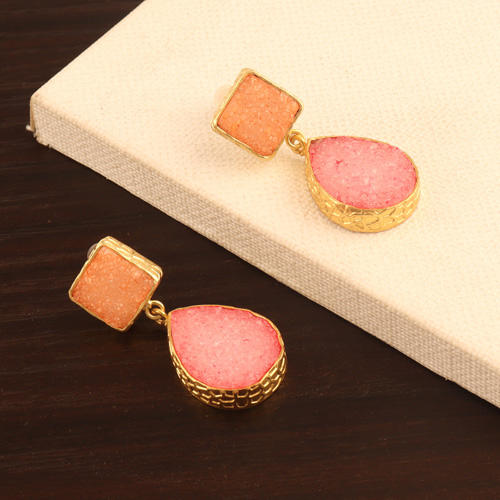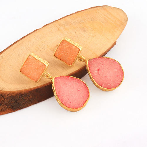 Boucle d'oreille double pierre véritable sugar druzy, belle texture plaquée or, finition pendante, bijoux, nouveau design 2022