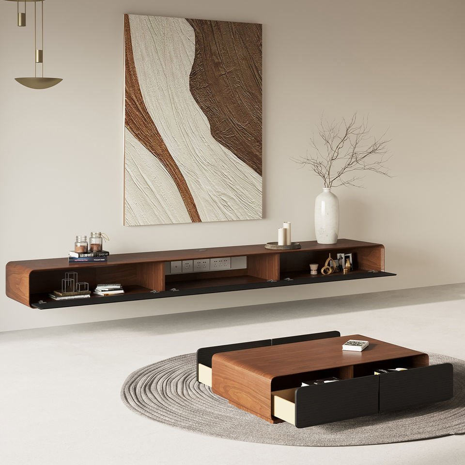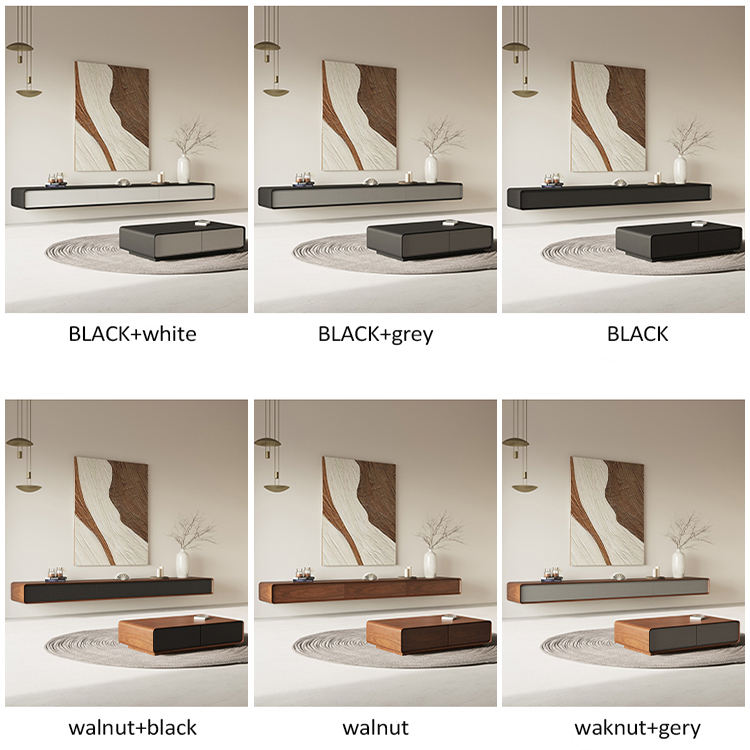 Junchuang Meuble TV mural flottant MDF E1 100*50*35–300*37*25 cm tiroir coulisse silencieuse, MOQ 1 cont. (min 5 pcs)