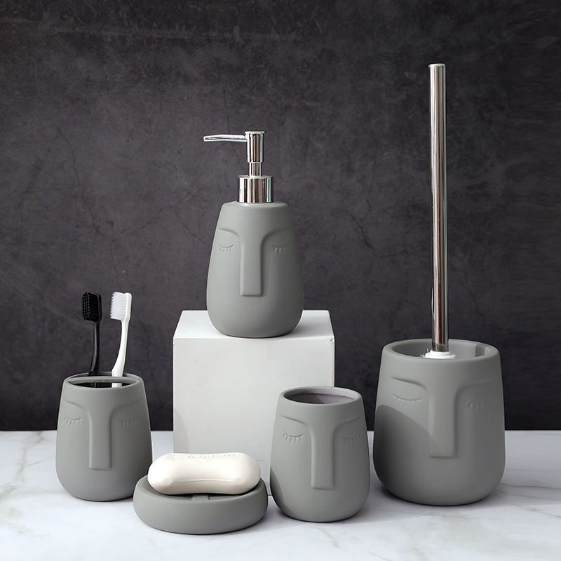 2022 Nouvelle peinture en caoutchouc mat écologique Design de visage en céramique Ensemble de 6 accessoires de salle de bain
