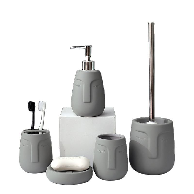 Item Name:matte rubber paint Ceramic face design Bathroom Accessory set