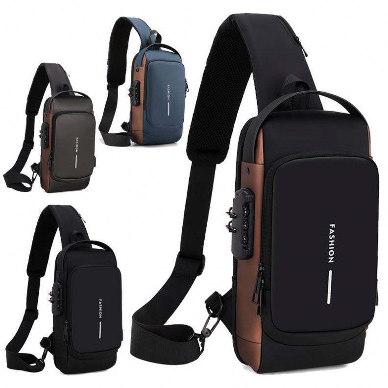 2022 New Fashion Men's Crossbody Sling Bag Waterproof Chest Bag with USB XL Size Zipper Closure