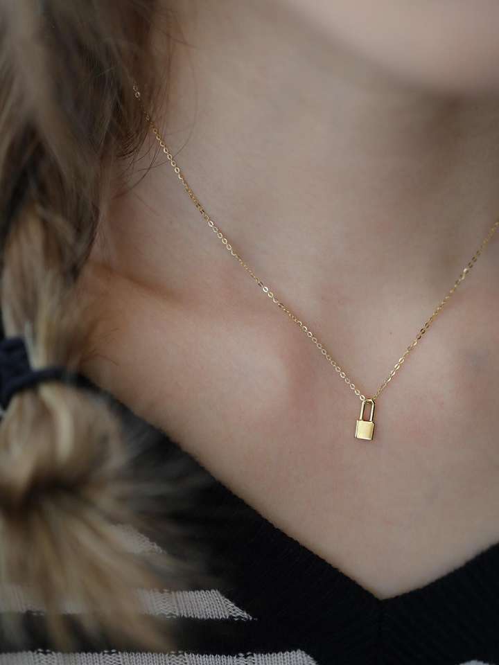 2022 nouveau Kj474 réel 9K or serrure breloques pendentif colliers bijoux à bricoler soi-même pour femmes et hommes cadeau