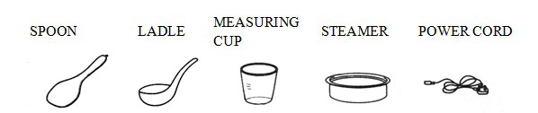 Tasse de mesure, Palette, Cuisson à la vapeur du panier, Cuillère