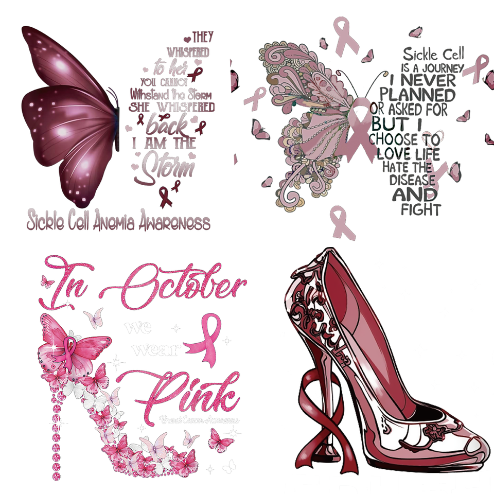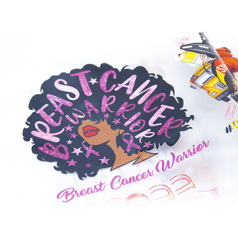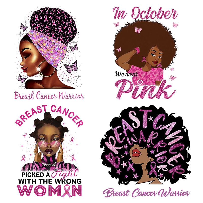 2022 nouveaux autocollants de transfert d'impression d'écran, autocollant de lutte contre le Cancer du sein noir gir uv dtf tasse enveloppes de transfert designs pour t-shirts