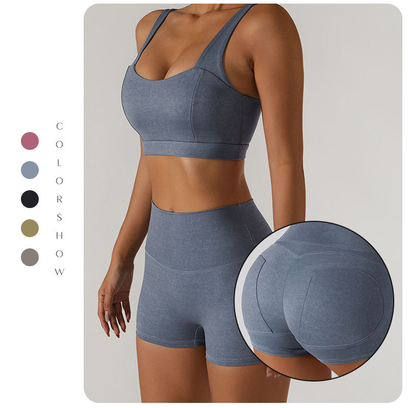 2022 nouveau soutien-gorge de sport pour femmes et short de Compression ensemble respirant léger Denim lavé à l'acide pour l'entraînement de Yoga