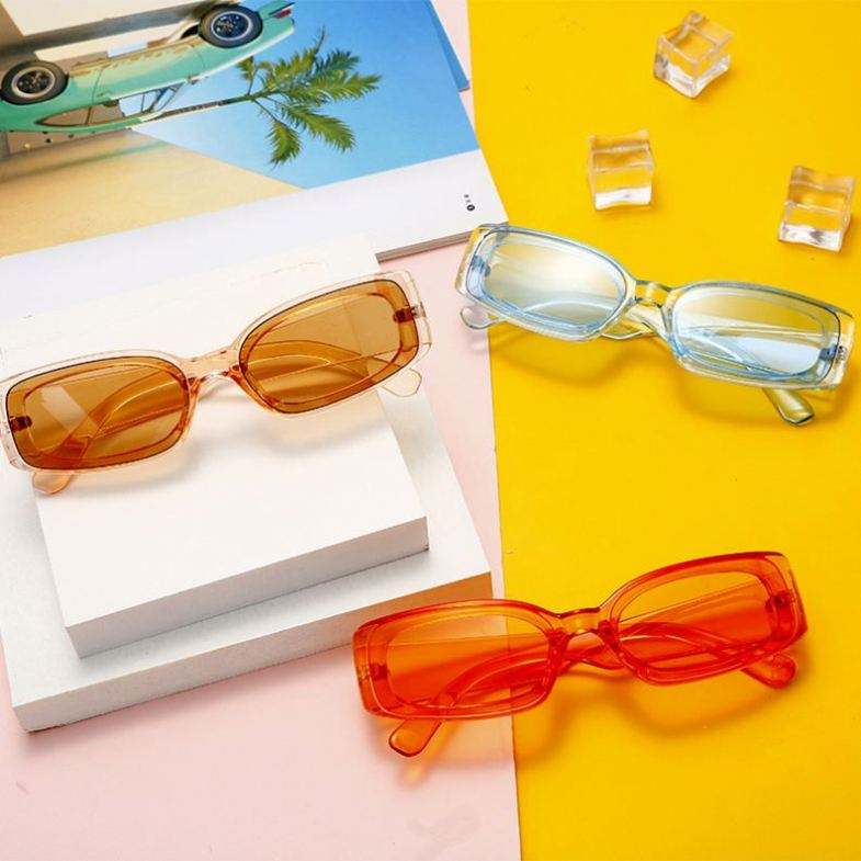 Lunettes de soleil carrées rétro couleur bonbon, tendance 2022, petites lunettes de soleil rectangulaires colorées pour femmes