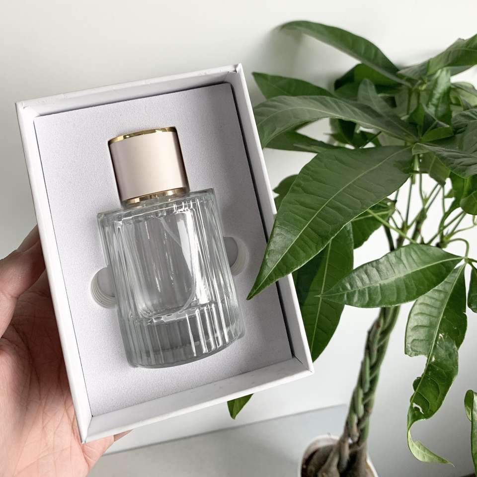 Bouteille de parfum de luxe de forme ronde, 30ml 50ml en verre transparent, rechargeable pour hommes et femmes avec boîte, 2022 populaire