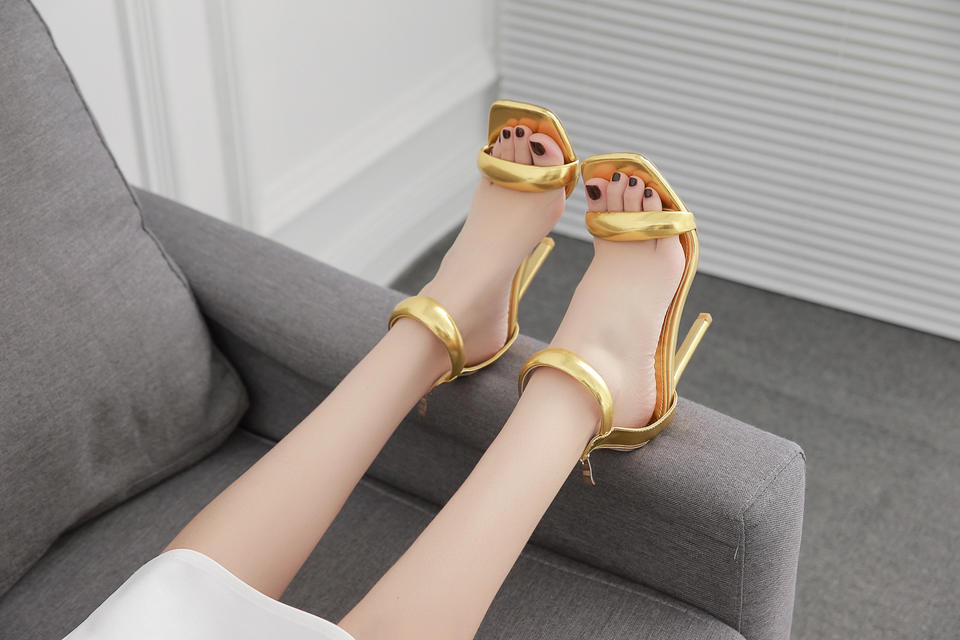 Sandales pour femmes à bout ouvert argentées et dorées 2022, talons hauts, sexy, avec boucle et bride à la cheville, sandales pour femmes, chaussures de club, chaussures de strip-teaseuse
