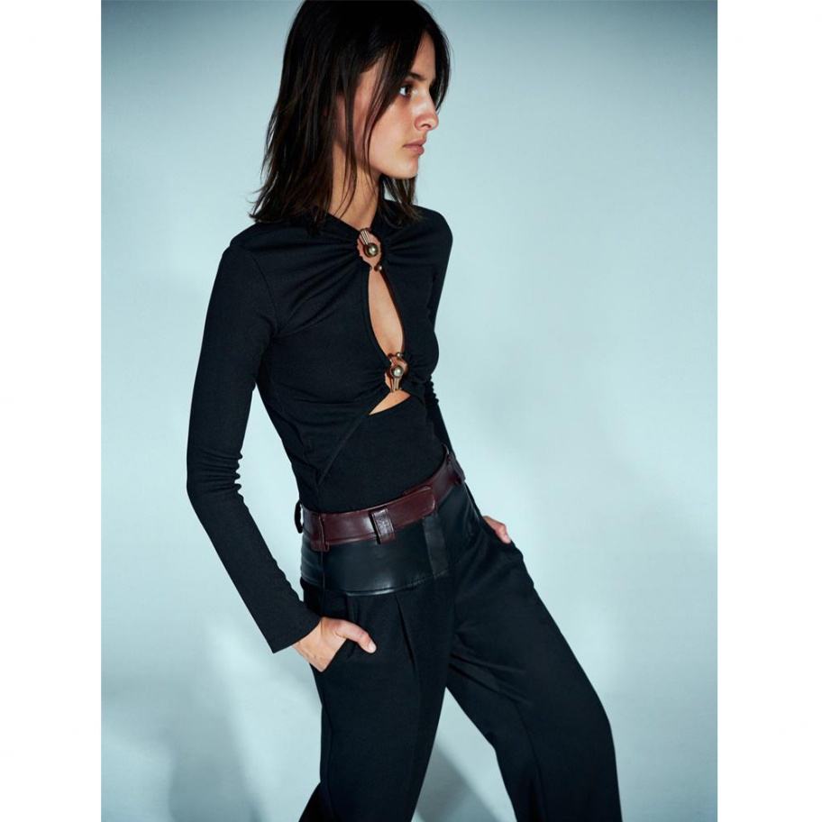 Nouveauté Printemps 2022 – Blouse Courte Sexy Rayée Bleue et Blanche à Manches Longues pour Femme