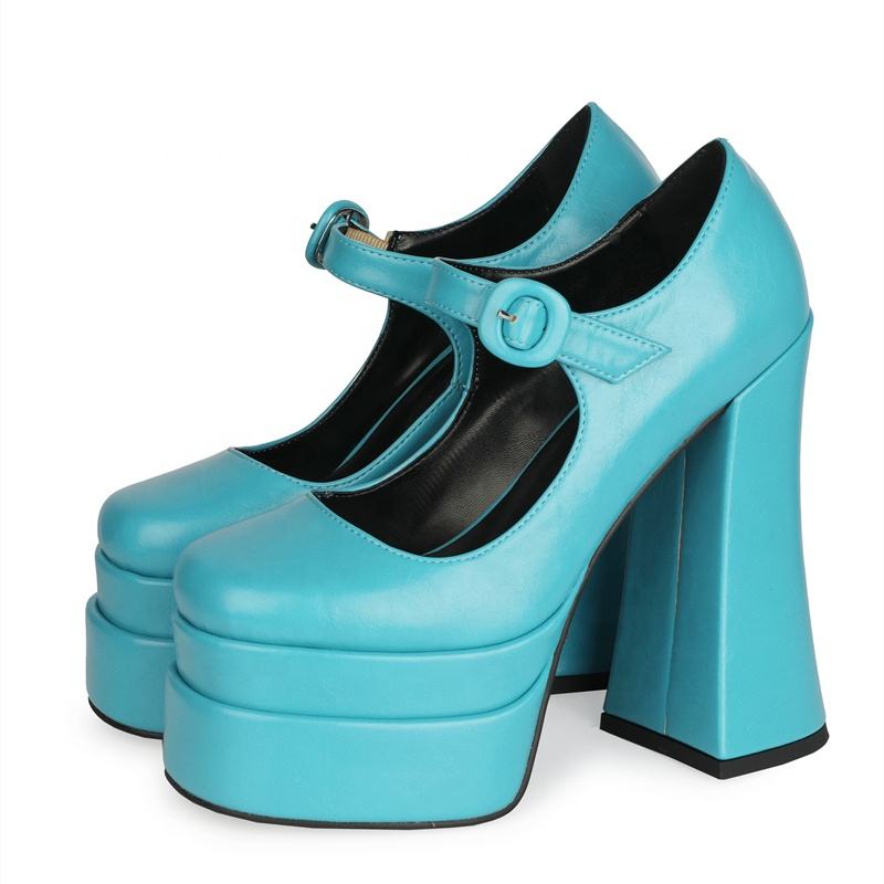 Nouvelles Chaussures à Talons Épais et Plateforme pour Femme Printemps-Été 2022, Bout Carré, Bride à Boucle, Style Mary Jane, Taille 45