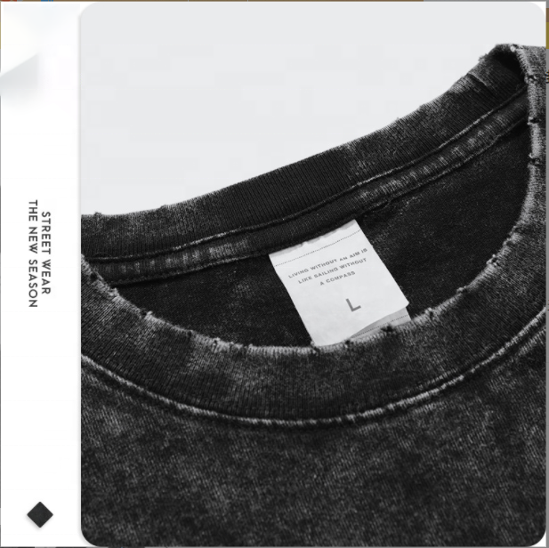 T-shirt Homme Oversize Vintage Noir Streetwear Personnalisé Effet Délavé 2022 en Tissu Spandex/Polyester avec Impression en Relief