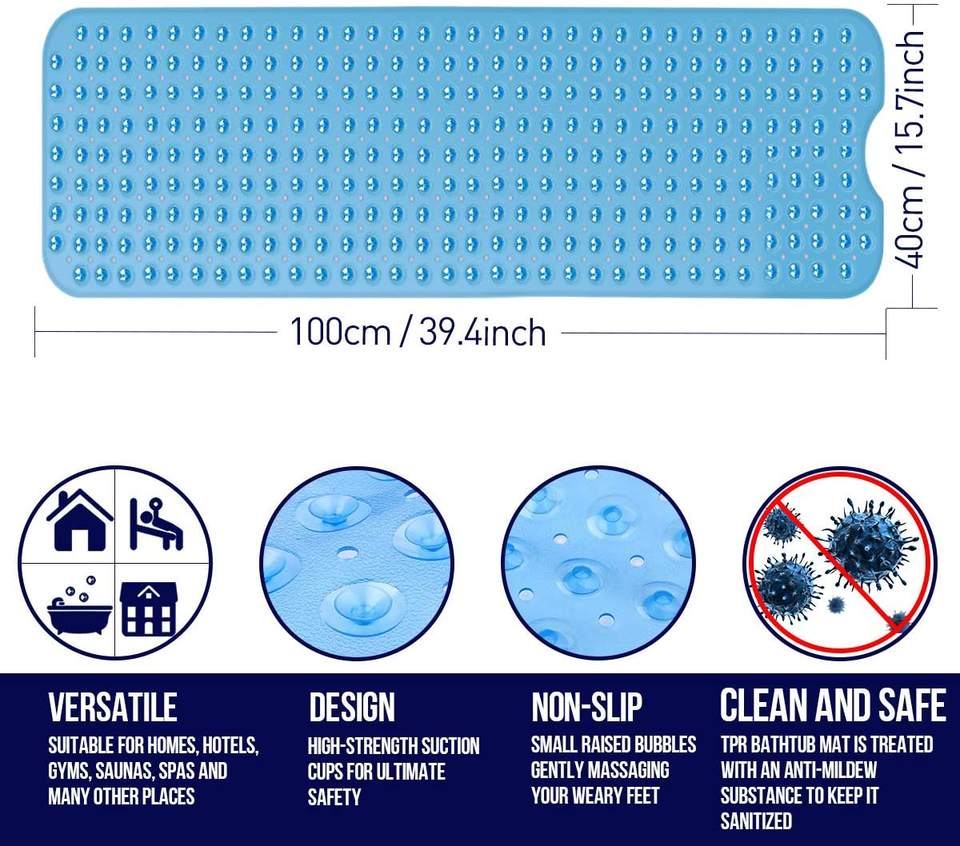 Tapis de douche tablette 2022 de 100x40 cm, tapis de bain antidérapant avec ventouse