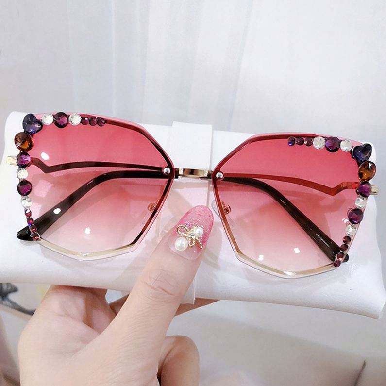 Lunettes de soleil œil-de-chat sans monture en alliage vintage unique 2022 avec strass irréguliers et cristaux pour femme