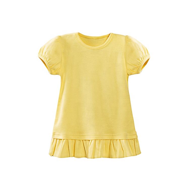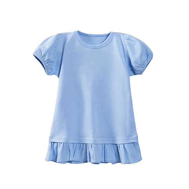 T-shirts pour filles, manches courtes à volants, coton personnalisé, vente en gros 2022