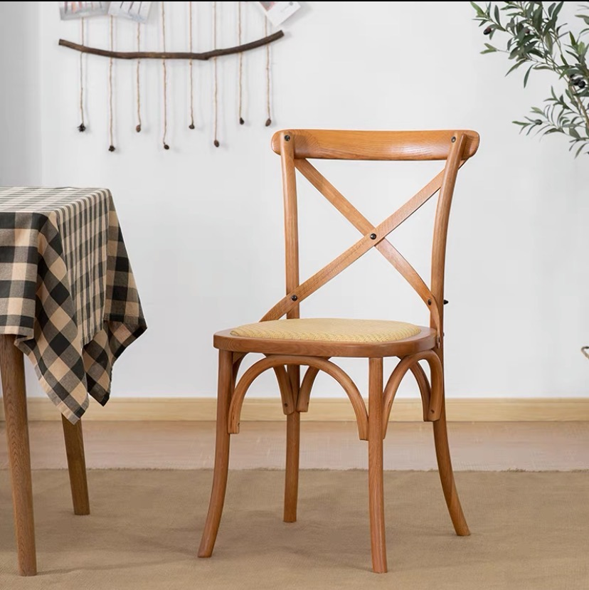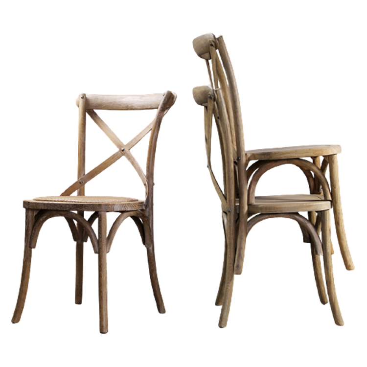 2022 gros pile empilable hêtre chêne croisé chaise croix dossier chaise vignoble salle à manger bois X mariage maison meubles moderne