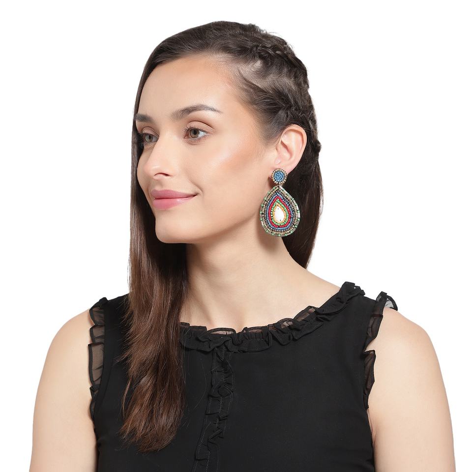 2022 femmes haute couture à la main au crochet perle de rocaille boucles d'oreilles multicolore en gros