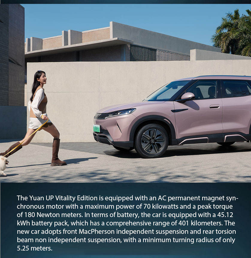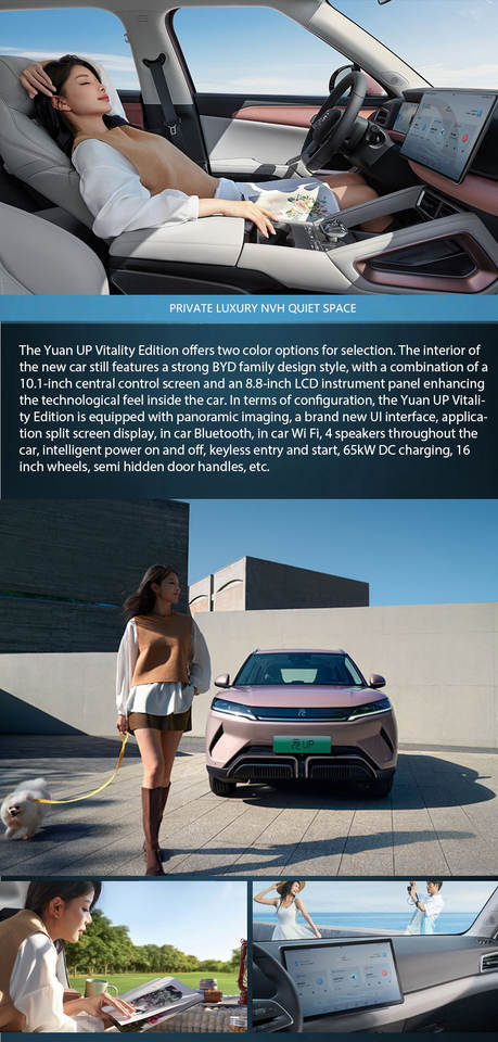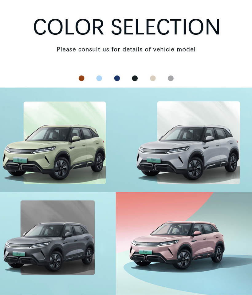 Voiture électrique BYD Yuan up 2025, édition conduite intelligente et vitalité, avec une autonomie NEDC de 401-500 km, un moteur de 50-100 kW, une batterie de 30-50 kWh