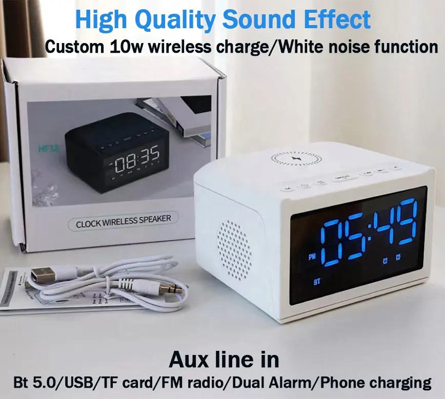 TF/USB/FM/AUX/Double Alarme/BT5.0/Appel mains libres/Charge rapide 10W