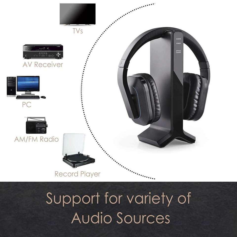 Casque sans fil 2,4 GHz pour regarder la télévision, portée de 30 m, 20 heures d'autonomie