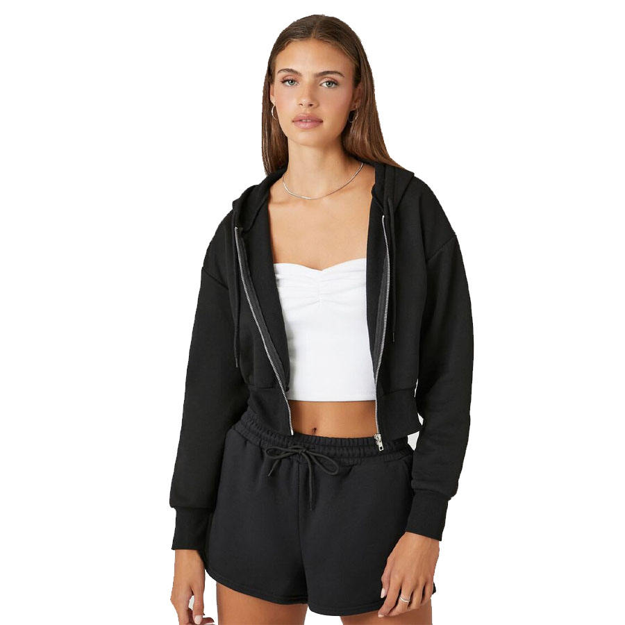 2023 meilleure vente basique polaire sweat à capuche zippé pour les femmes noir plaine recadrée conception col à capuche pour la saison d'hiver