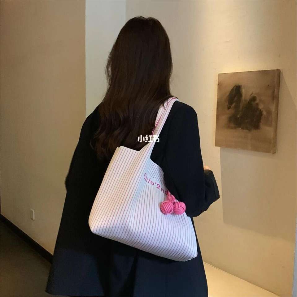 2023 Logo personnalisé mignon Crochet INS mode coréenne Style femmes Portable épaule sac fourre-tout à la mode tricot sac à main
