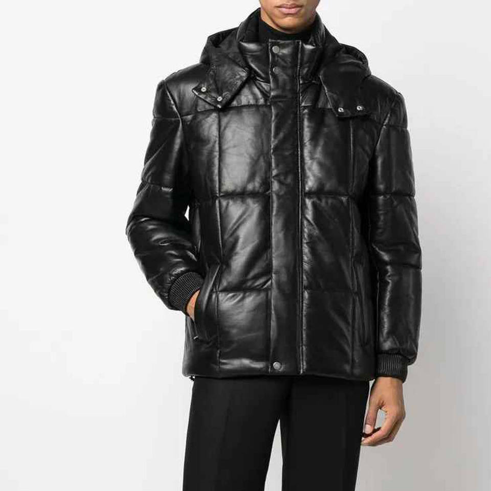Type de lu0027article:Leather Puffer Style Jacket