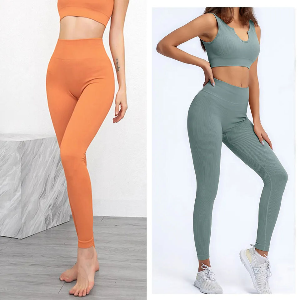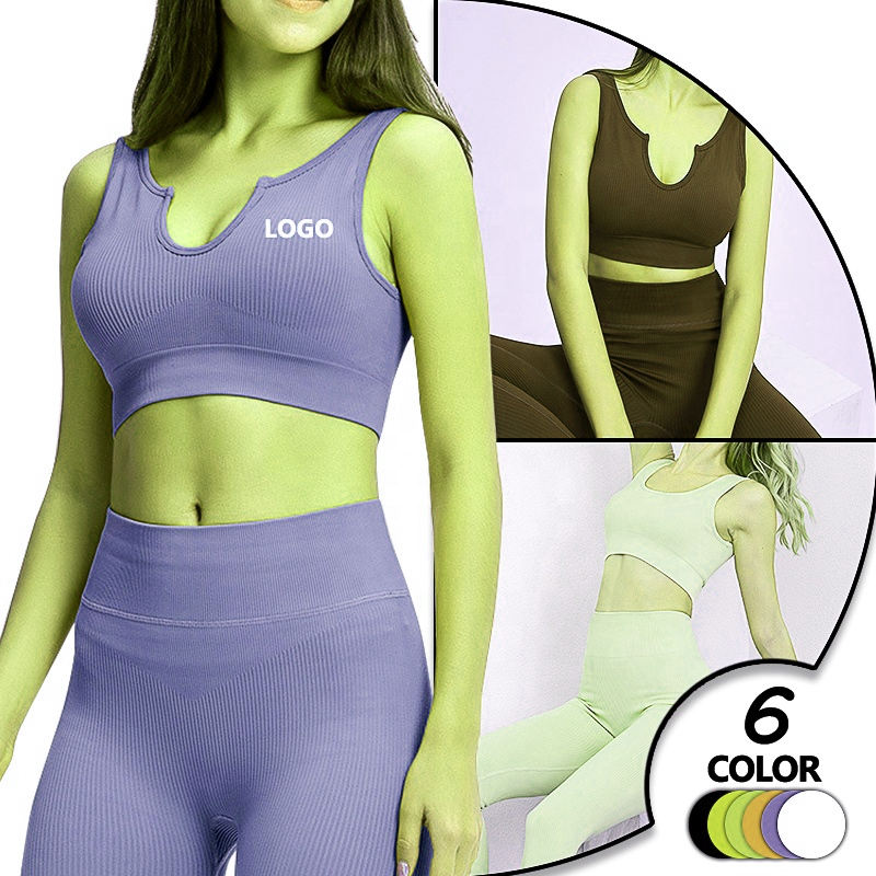 2023 mode personnalisé de haute qualité porter femmes Roupas Femininas côtelé sans couture Yoga Gym Fitness ensembles respirant et séchage rapide