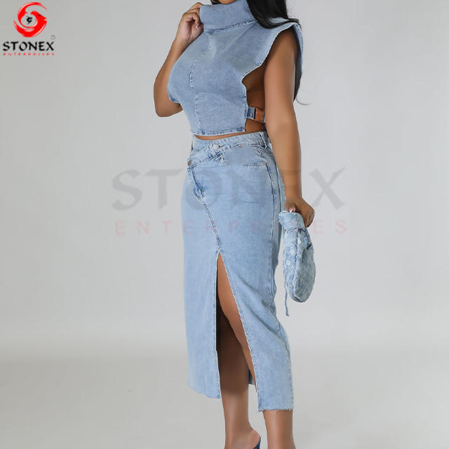 Keywords:high quality wholesale price women denim co-ord sets