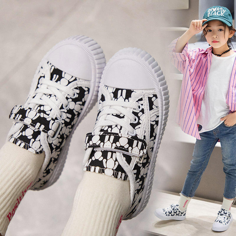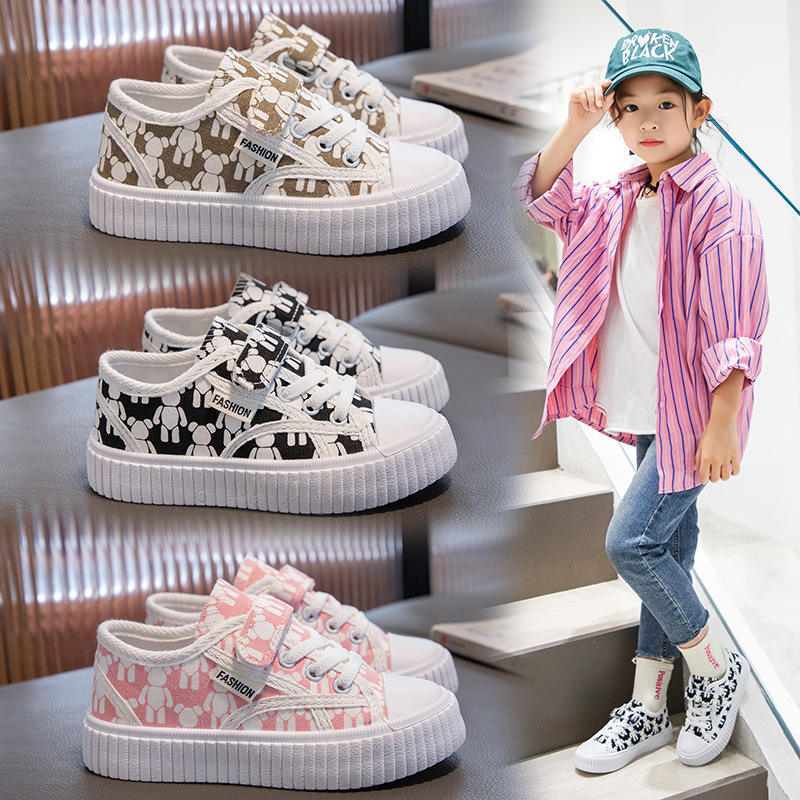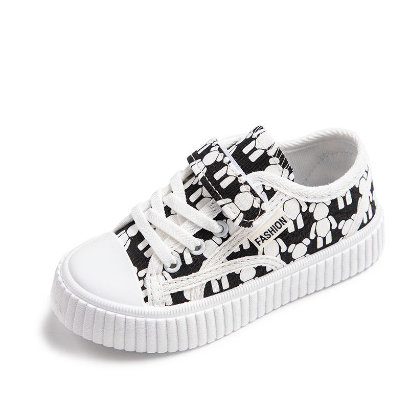 2023 Girls' & Boys' Breathable Canvas Low-top Cartoon Pattern Sneakers-Fitness Walking Shoes for Spring/Autumn Casual Use